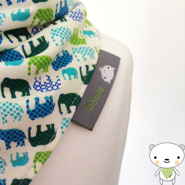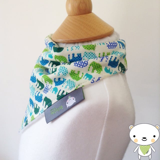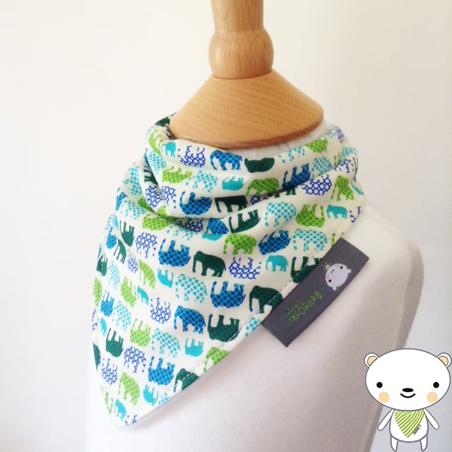 Gorgeous Handmade Dribble Bandana Bib in Fab Blue/Green Mini Elephants Fabric - Perfect for your gorgeous little Boy! Made from 100% Cotton and lined with an ultra soft and absorbent fleece fabric to keep clothes dribble free and looking ULTRA cute!