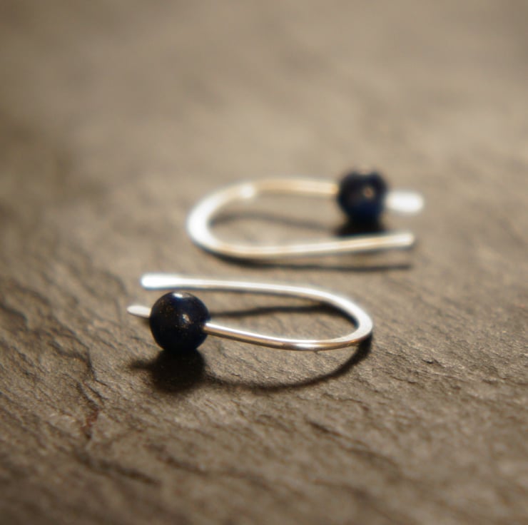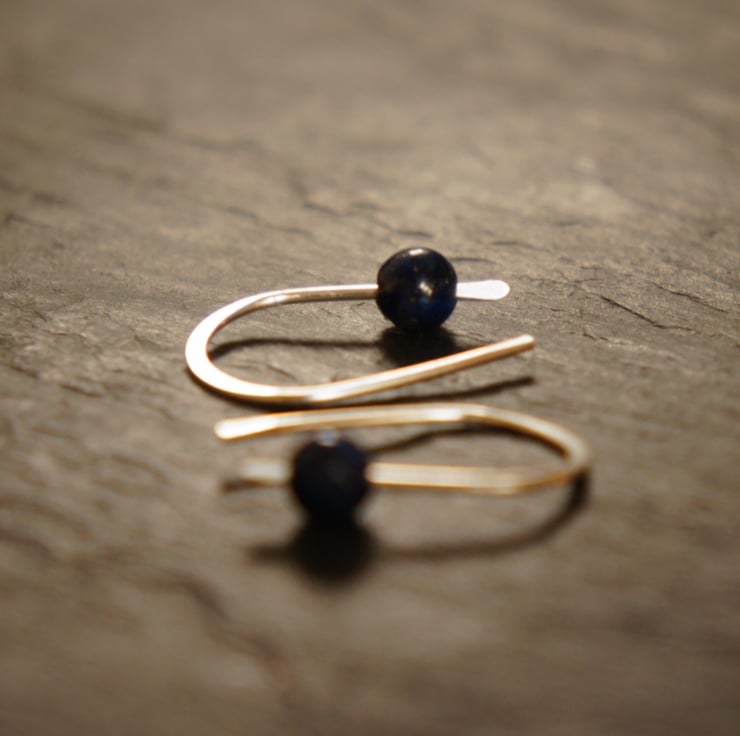 Lapis Lazuli gemstone beads threaded onto sterling silver wire.