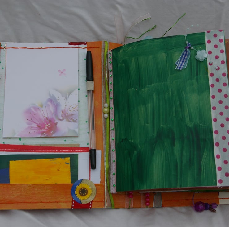 For many years I have always upcycled bits of card and paper into small note books for myself and friends. This developed into making larger journals and scrapbooks. I simply love recycling and creating useful and pretty new items.