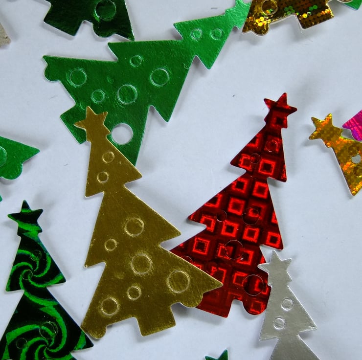 This sale is for 25 colourful Christmas tree shaped die cuts, cut from good quality card.