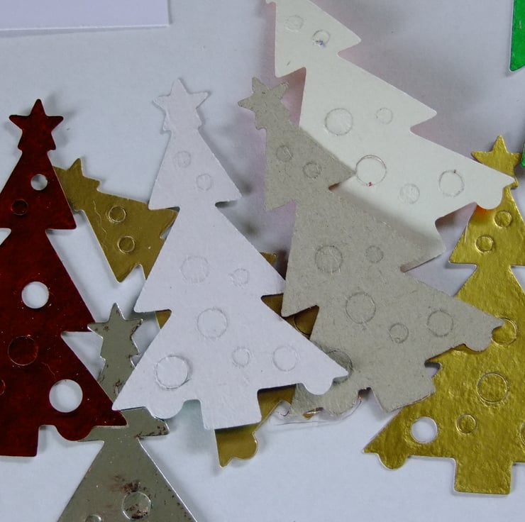 25 Christmas Tree Sizzix die cuts for embellishing cards, table decoration.