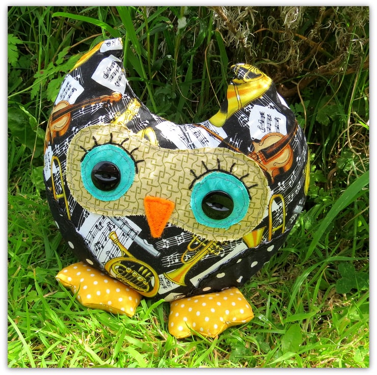 SALE!!!  An owl doorstop with a musical design. Owl bookend.  Owl decor.