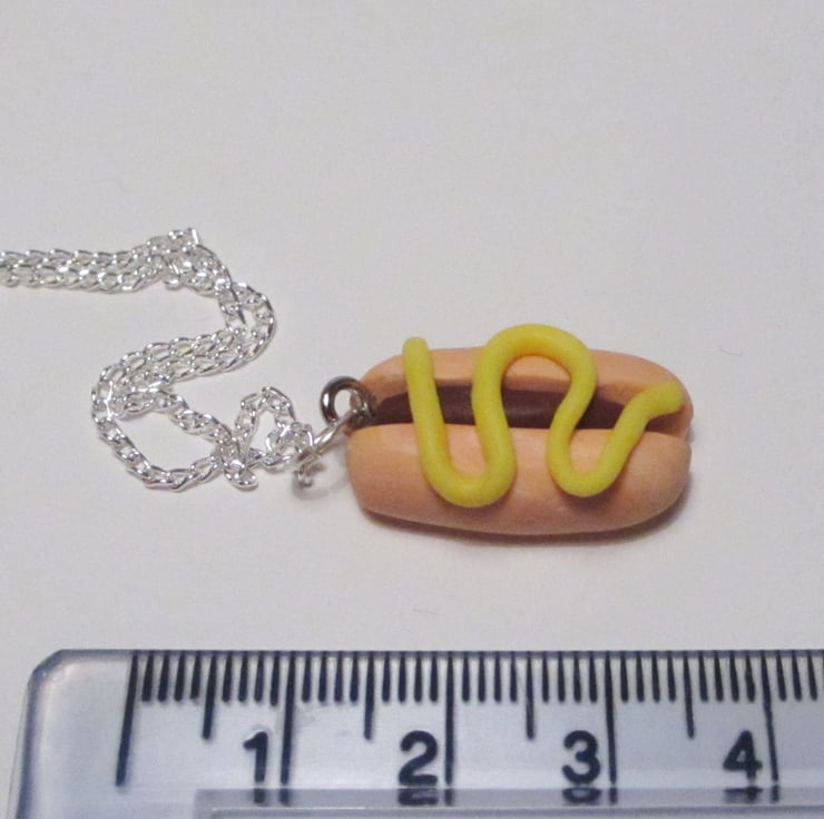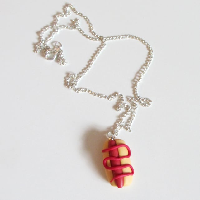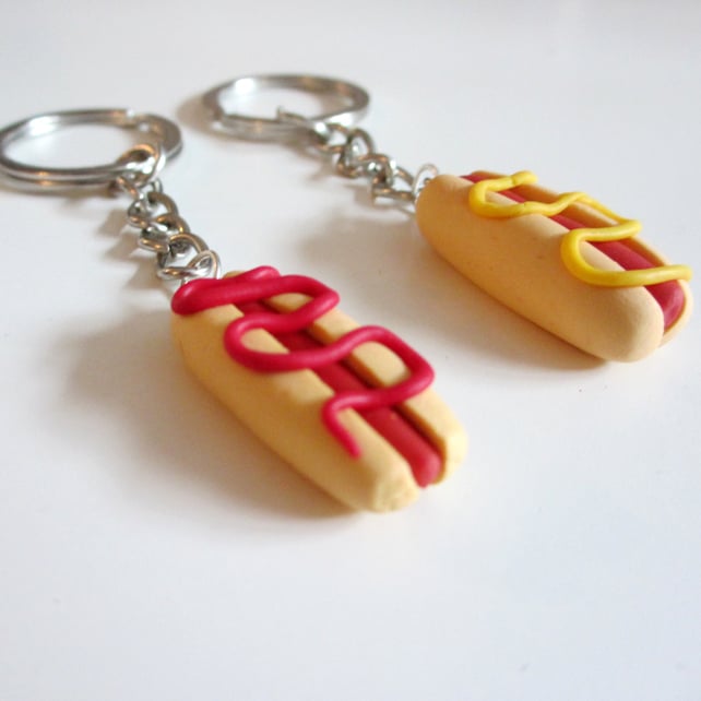 Retro Hot dog with mustard OR ketchup necklace OR Keyring, fun, unique, handmade