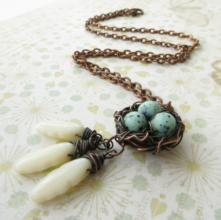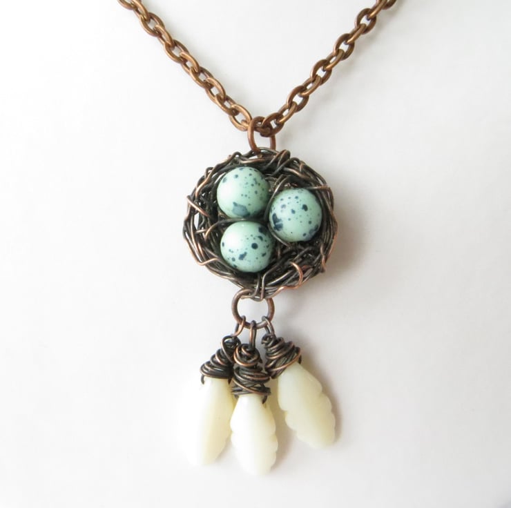 This nest necklace would make a lovely gift for any fan of nature jewellery, the copper wire nest makes it that little bit different!