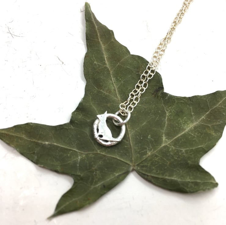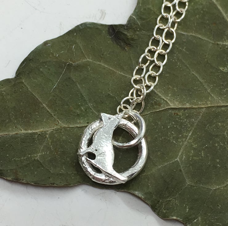 Made using a saw, a file, a hammer, pliers, a drill, silver solder and quite a bit of elbow grease . This dainty 18" necklace is light enough to wear as an everyday piece and is perfect for cat lovers.
