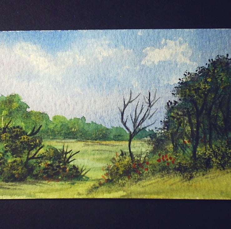 this is an original painting that has been created using quality materials. It will come in a clear polybag to protect it. This is an original and not a print. An aceo is a miniature painting that measures just 2.5" x 3.5" and is highly collectable. It can be framed or displayed in a photo album.