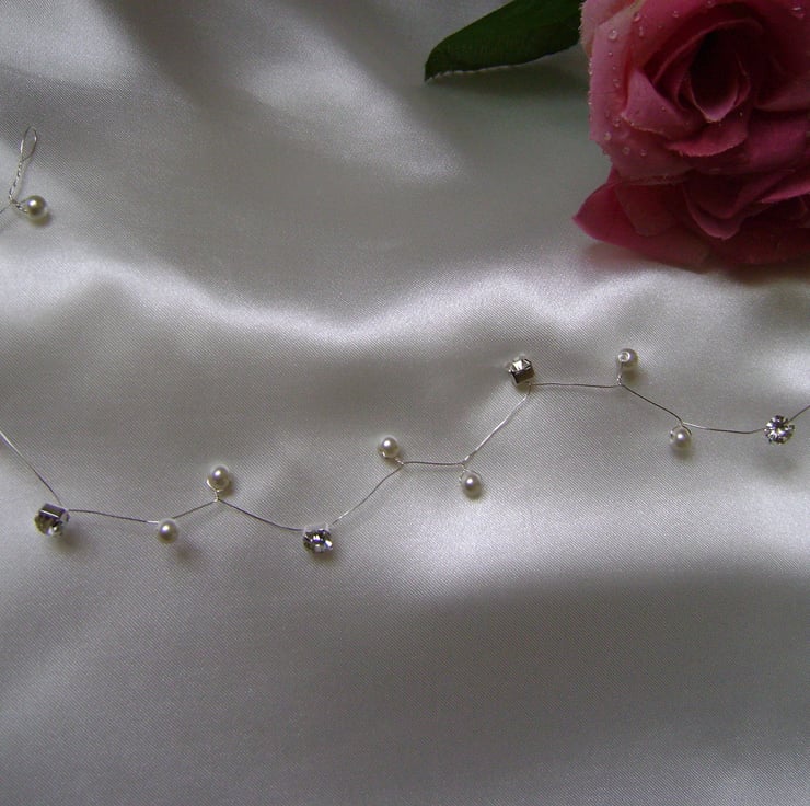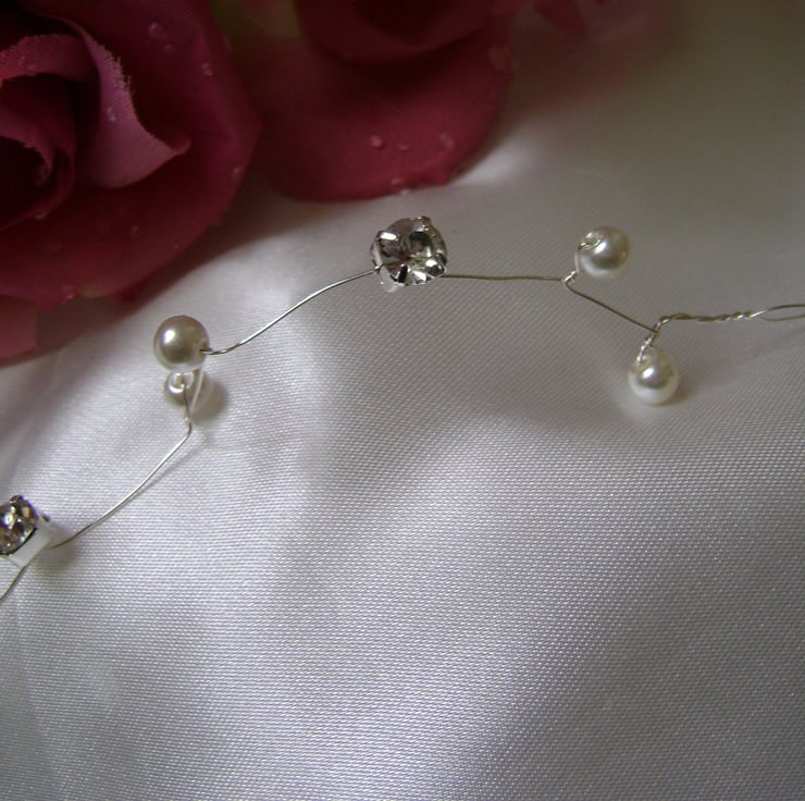 A simply gorgeous and very pretty alternative to a tiara. This hair vine is handmade with sparkling Diamantes and shimmering ivory pearls. It is approx 12 " / 30.5cm in length, if you would prefer a different length or color pearl, just message me with your requirements.