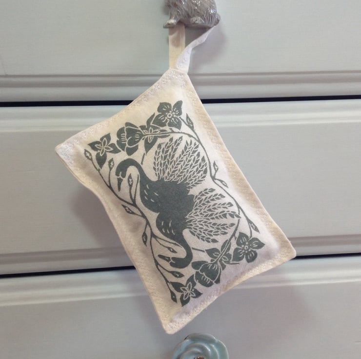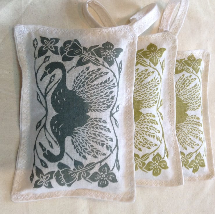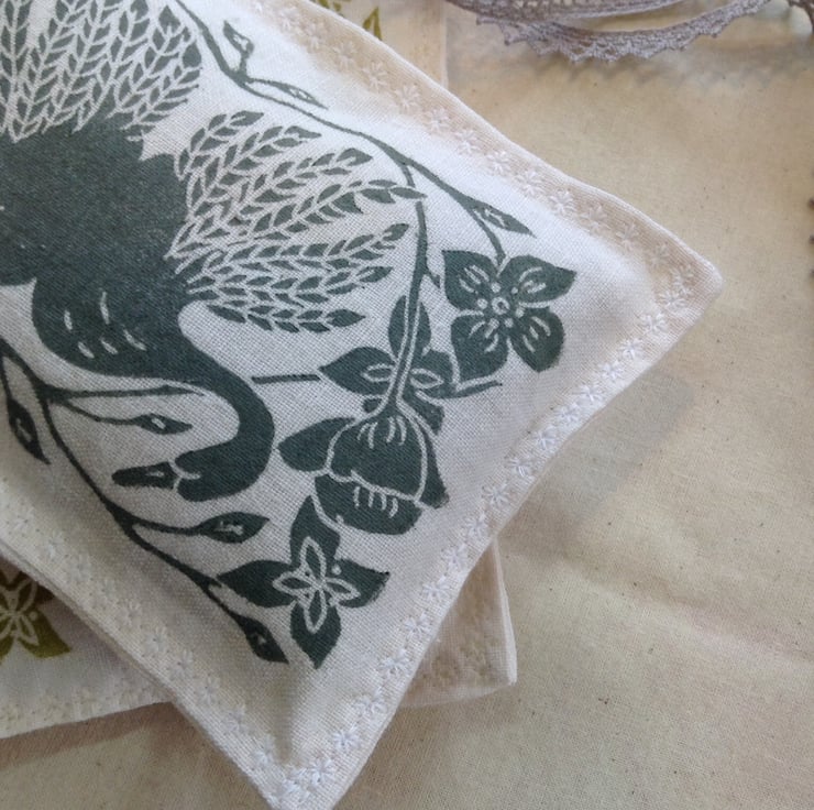 Printed with a lovely soft Grey linseed oil based ink onto a cotton fabric. The lavender is contained in a thin fabric within the sachet to protect the outer fabric and print but allow the superb fragrance to come through.