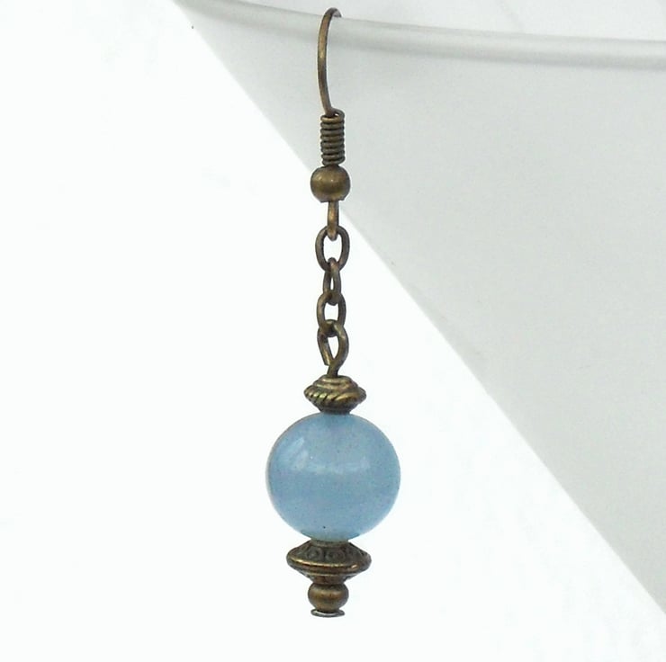 I love the combination of this shade of blue and the bronze of the wires, chain and rondelle beads.