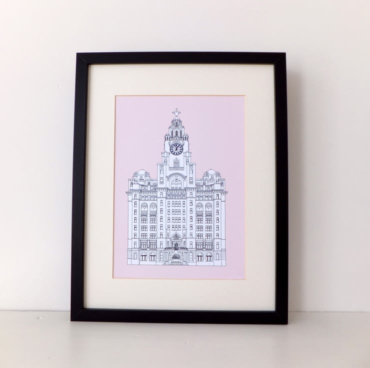 This listing is for ONE SOFT PINK Liver Building print. Other colours are available in our shop. Please bear in mind that colours vary from monitor to monitor so the colour you see may be slightly different from the colour of the print.