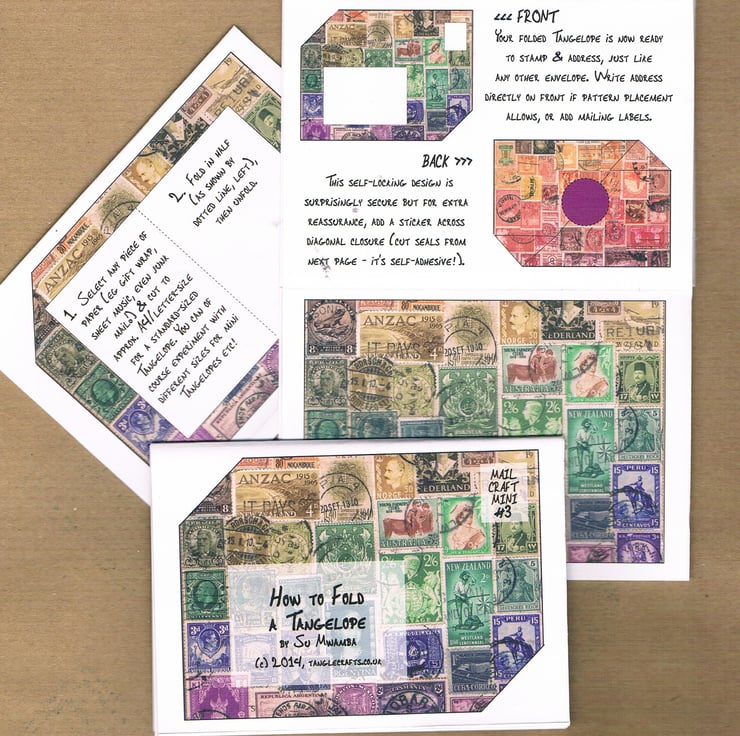 This 8 page mini-zine provides diagrams & instructions to fold your own origami self-locking self-mailing envelopes. You can write your message on the inside (no separate paper required!) then fold so that your message is hidden, and address & stamp the outside ready for mailing. The folded envelope is based on a traditional design which tucks into itself securely so that no glue is required to seal. (Pic 2 shows a folded example, not included - see separate listings.)