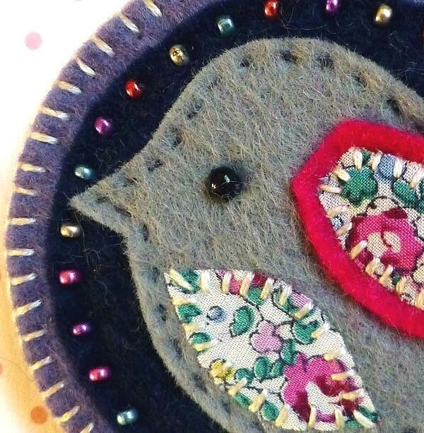 This is a lovely hand stitched bird brooch in great colours for the Summer.