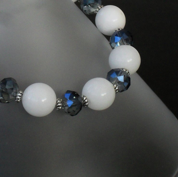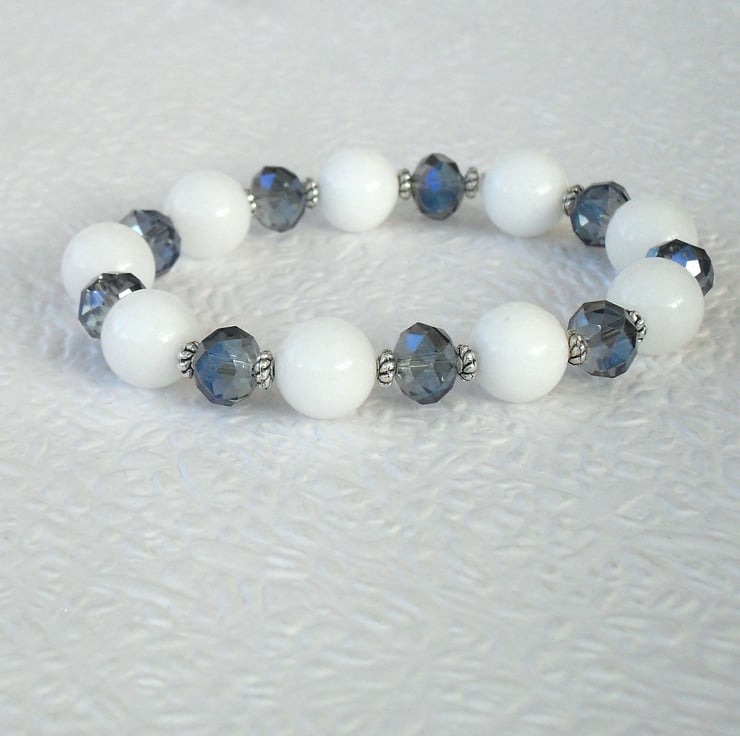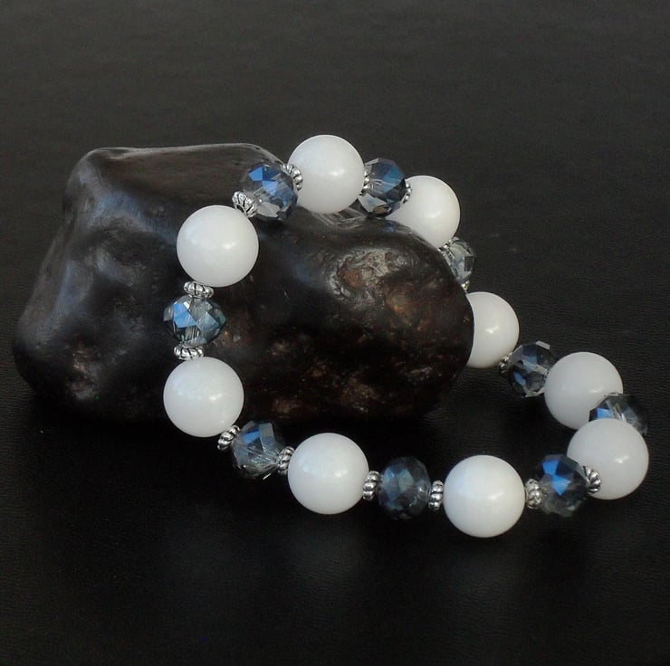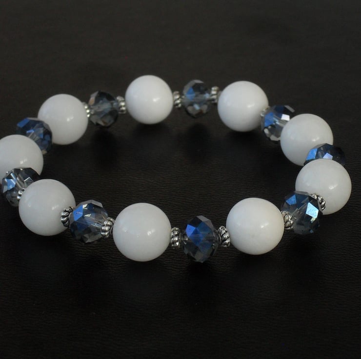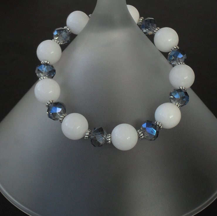 A unique item of jewellery - this white jade and delicate blue crystal bracelet is an ideal addition to your jewellery collection.