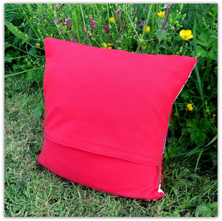 It is backed with a heavyweight, cherry red cotton, with a deep, envelope opening.