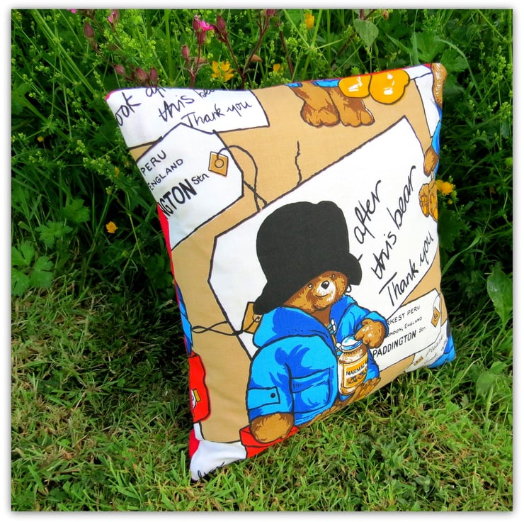 This is a 38cm x 38cm cushion, (15.2 x 15.2 inches) featuring Paddington Bear.