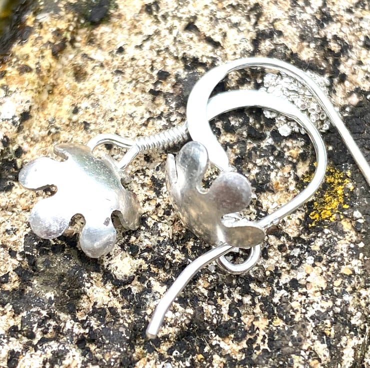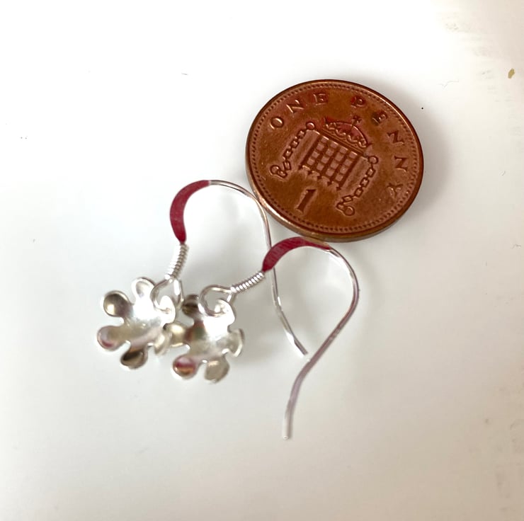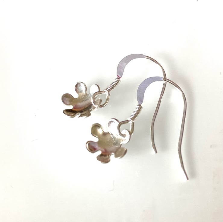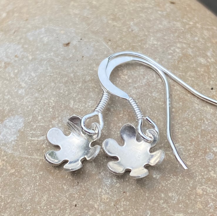 Even at my age, I am a hopeless romantic, full of Hearts & flowers - like these tiny sweet silver flower earrings. On a sterling silver hooks, they are light & wearable. The little flowers are shiny sterling silver.