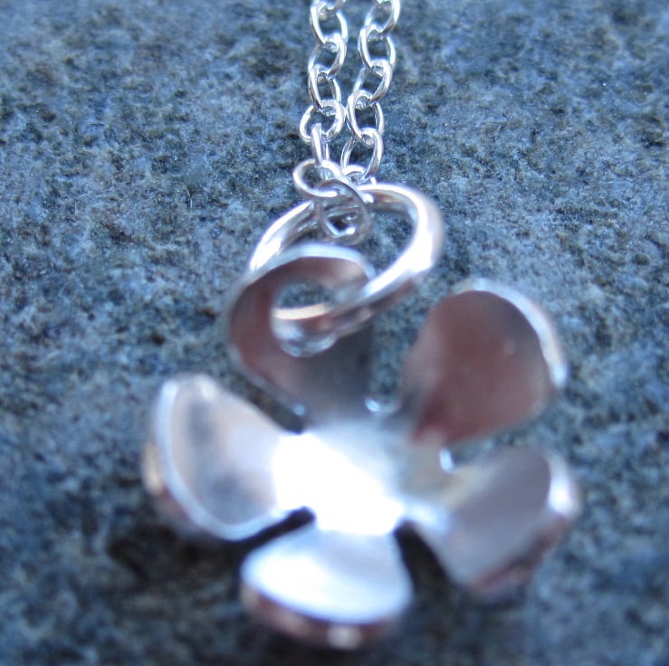 Even at my age, I am a hopeless romantic, full of Hearts & flowers - like this tiny sweet silver flower necklace. On a sterling silver chain, it is light & wearable. The little flower is shiny sterling silver.