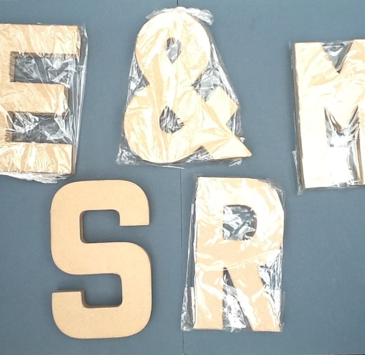 This listing is for 4 letters, E,M,S,R and the symbol &. All 20 cm tall and 2.5 cm deep. These letters are brand new and are excess stock from a crafting project I no longer do.
