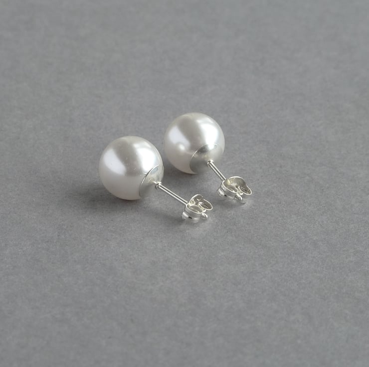 This simple pair of chunky white pearl stud earrings has been created using 10mm white glass pearls. Each pair of studs comes individually gift wrapped, making these earrings a perfect gift for a bride, her bridesmaids or a treat for somebody special.