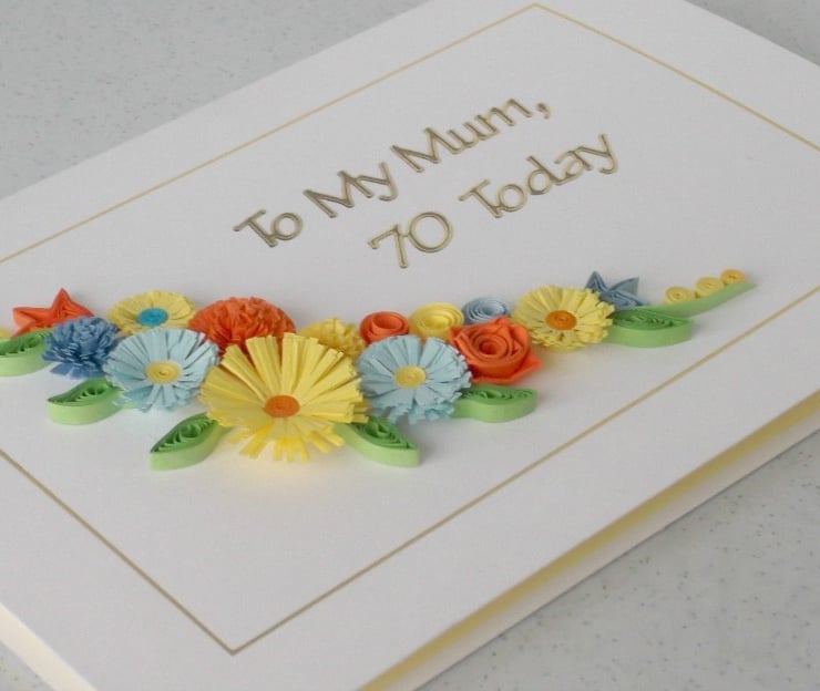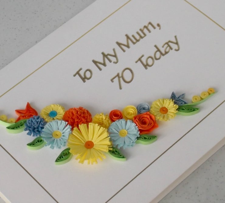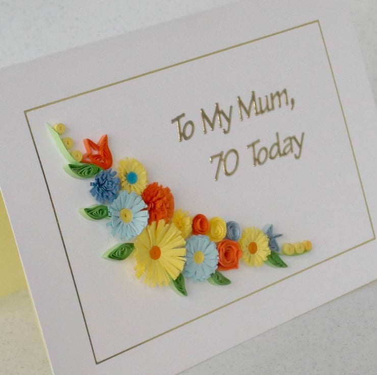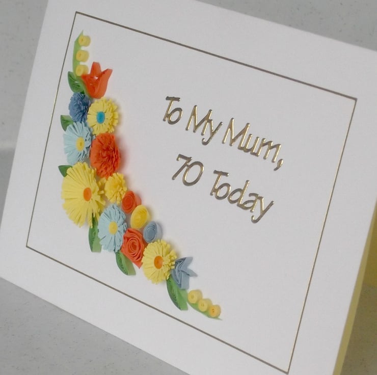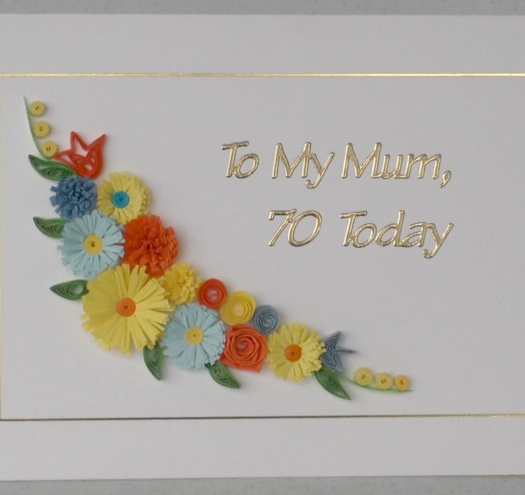 Handmade quilled 70th birthday greeting card. This card can be made for any special birthday - just let me know what you need by leaving a note at checkout.