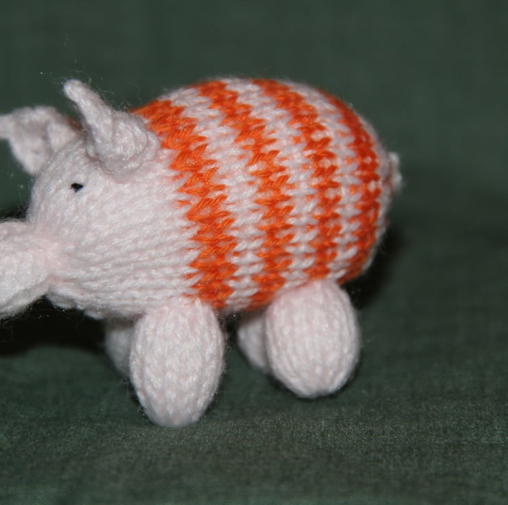Another piglet from the Sweet Shop, Fruity echoes the colours of those little Fruit Salad chewy sweets. This unique little piggy stands 5cm tall and is 8.5cm from snout to tail. Fruity has no sharp bits, everything is sewn securely & she is stuffed with polyester toy-grade stuffing so can be washed gently.