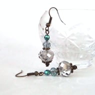 The earrings hang on silver plated earwires and have a drop of around 3 cms / 1.25 inches from the base of the earwires.