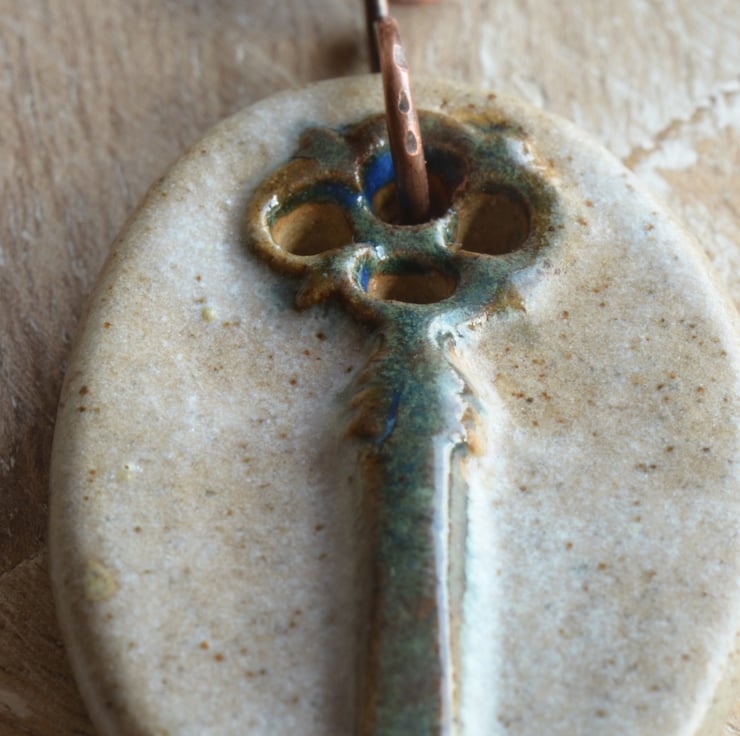 The Ceramic Key pendant is handmade by UK Artist Yvonne Johnson