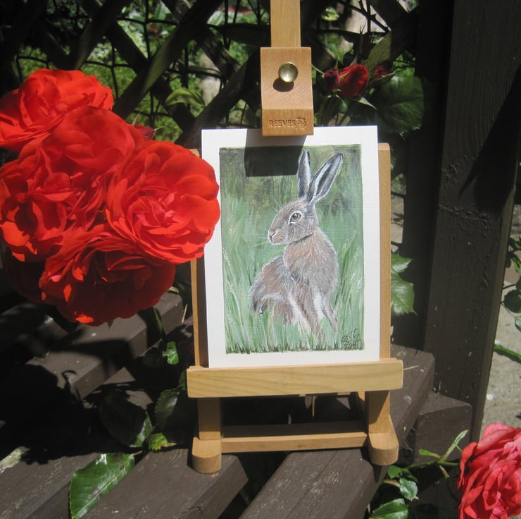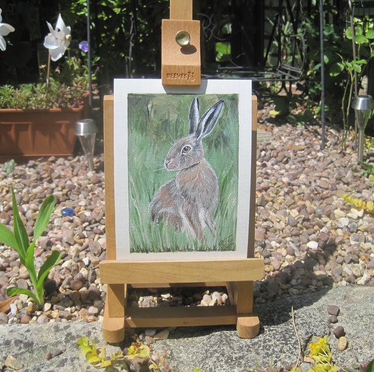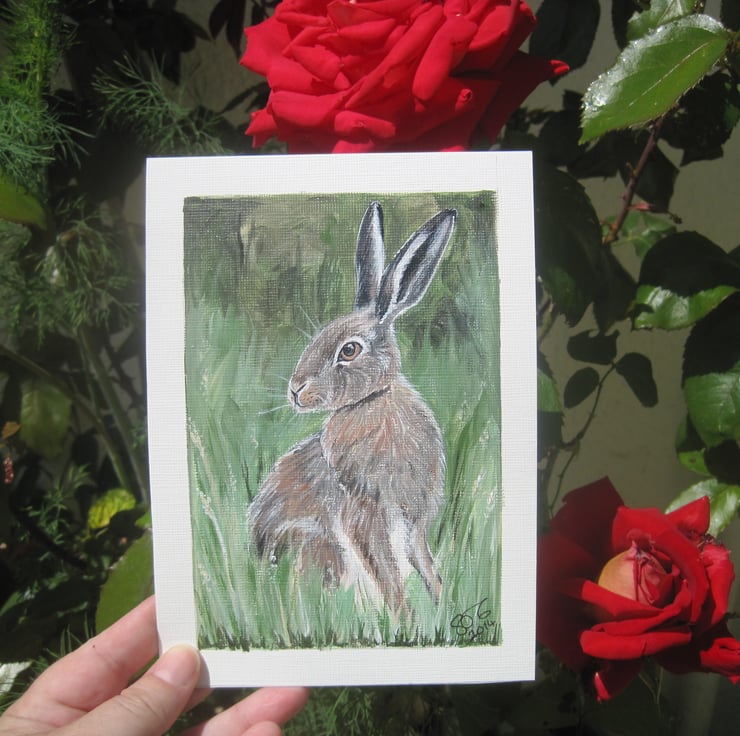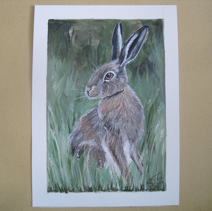 This is an original painting of a hare, painted in acrylics on acrylic canvas paper.