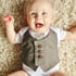Baby boy clothes: Bodysuit with attached sandy brown vest and floral tie