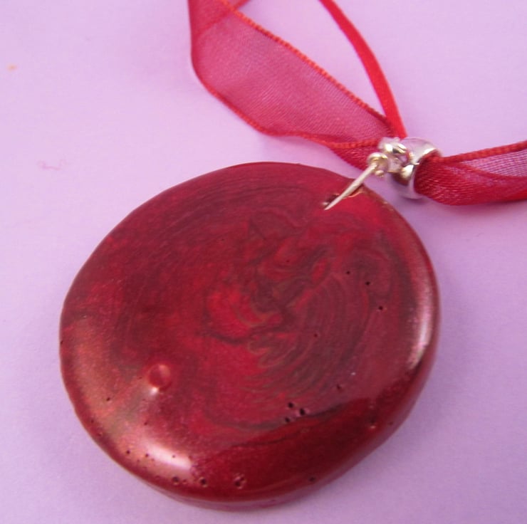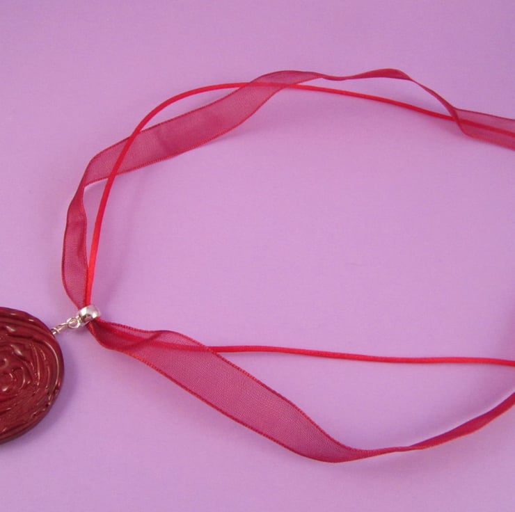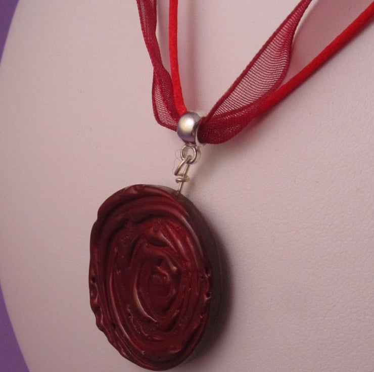 I had this pretty rose mould, and just knew that red would look good in it. The softness of the ribbon gives the pendant a delicate look., and makes the emphasis on the rose.