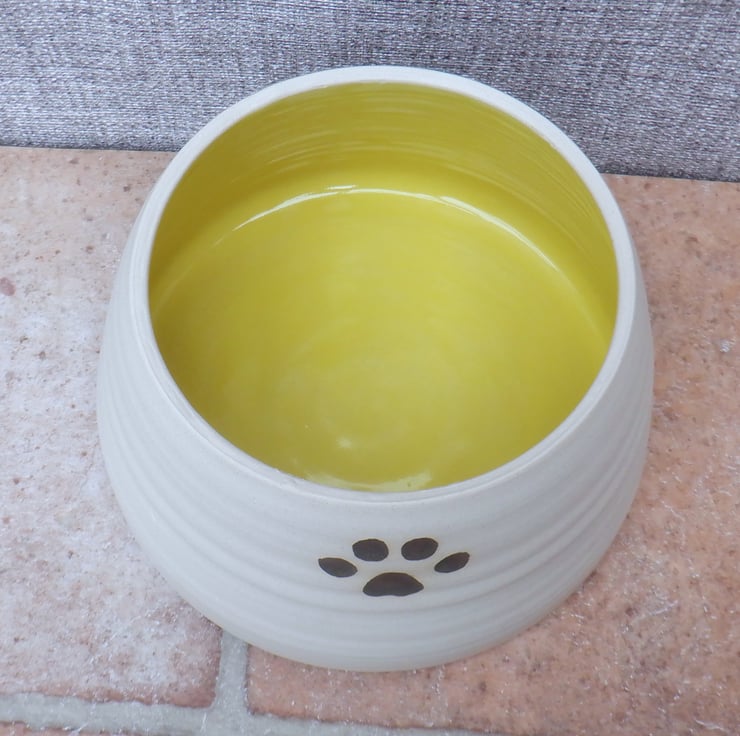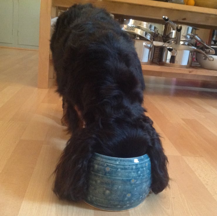 Spaniel water bowl for long eared dog hand thrown stoneware pottery ceramic