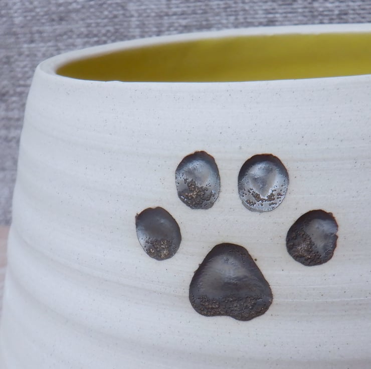 This bowl was handthrown by me on my pottery wheel using strong ivory stoneware clay, and finished in a pretty lemon yellow glaze.