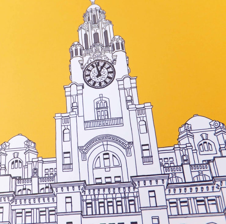 This listing is for ONE SUNSHINE YELLOW Liver Building print. Other colours are available in our shop. Please bear in mind that colours vary from monitor to monitor so the colour you see may be slightly different from the colour of the print.