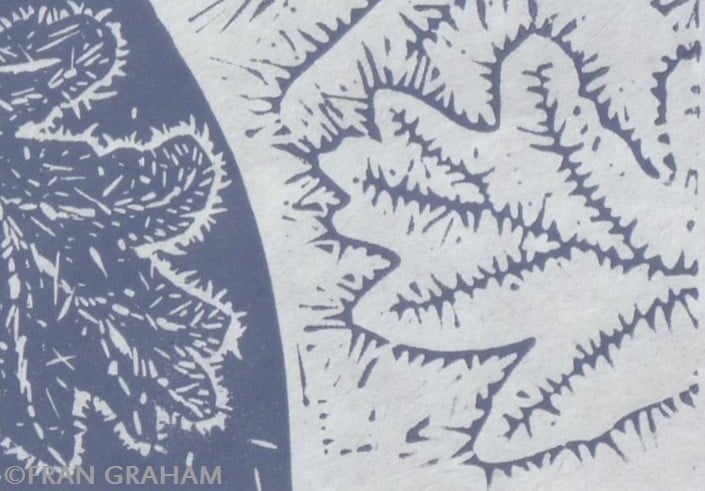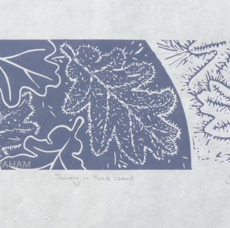 This original lino print is a study of hoar frost crystals on the leaf litter of the woodland floor in Grass Woods. Grass Woods is a beautiful ancient woodland nature reserve near Grassington in the Yorkshire Dales National Park.