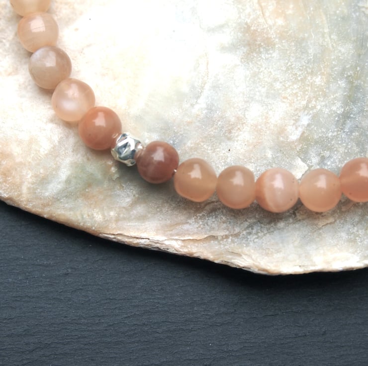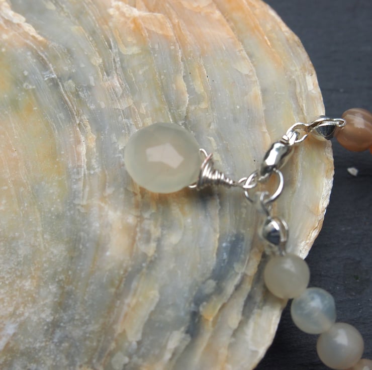 These particular moonstones were part of a strand that included clear, milky-white, cream, grey and peach stones, although moonstones can also be found in yellow and green. I loved the combination of the peach and the cream stones merging into each other.