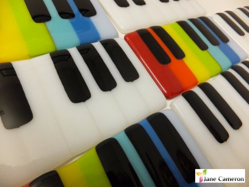 I individually hand cut and finish each piece of coloured sheet glass before firing them in my kiln.