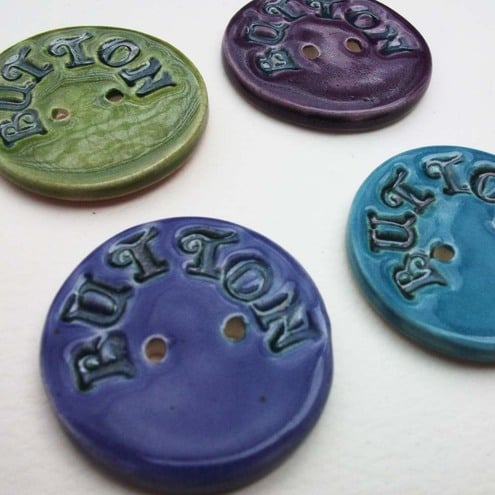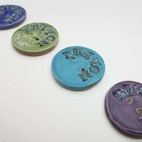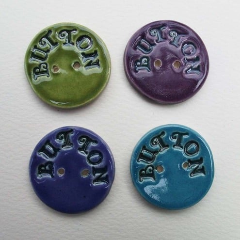 This set of four buttons are made from white earthenware clay, embossed and glazed to 1100 degrees, so nice and strong.