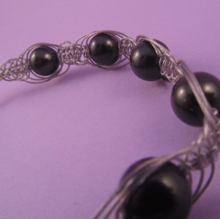 I had these pretty black shell pearls and I really wanted to use them in an art deco design. I achieved it with this bracelet.