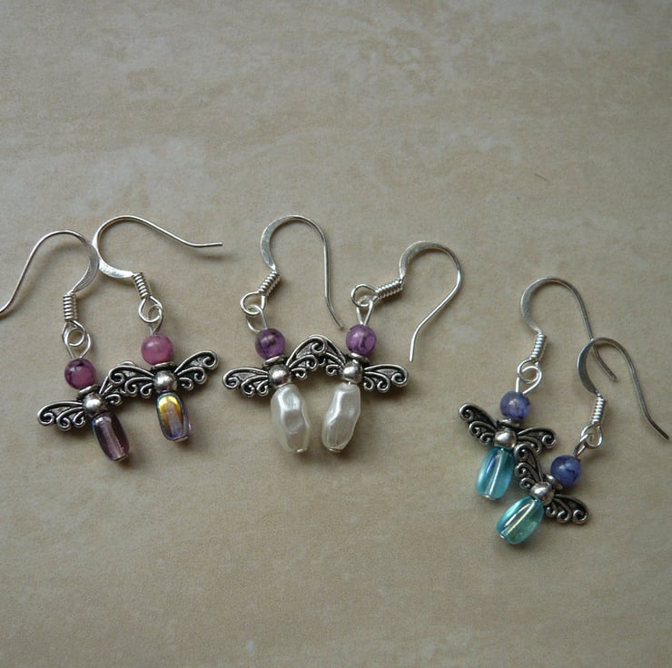 These sweet little angel earrings measure approx 15 mm in length and hang from a ilver plated ear wire. They will come with rubber stoppers and in an organza bag perfect to be given as a gift to someone.