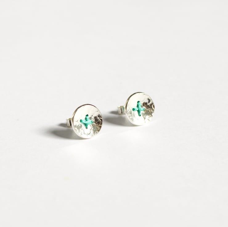 The silver button measures 1cm in diameter and 1mm thick silver sheet, so a lovely compact, yet robust wearable everyday earring.