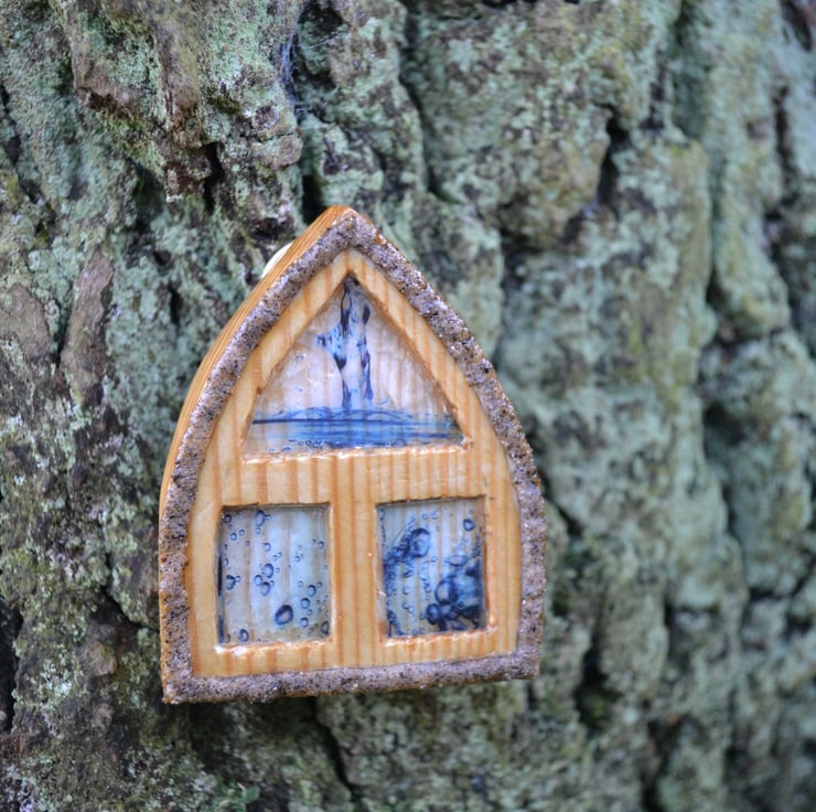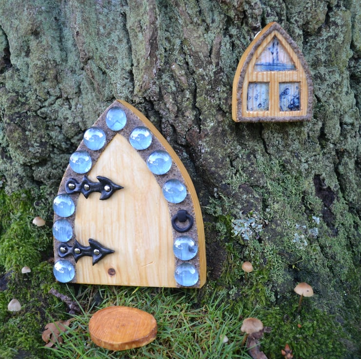 The door and window have a hanger attached to the back for placement on a tree trunk or other wooden surface and I have included two small nails for hanging.