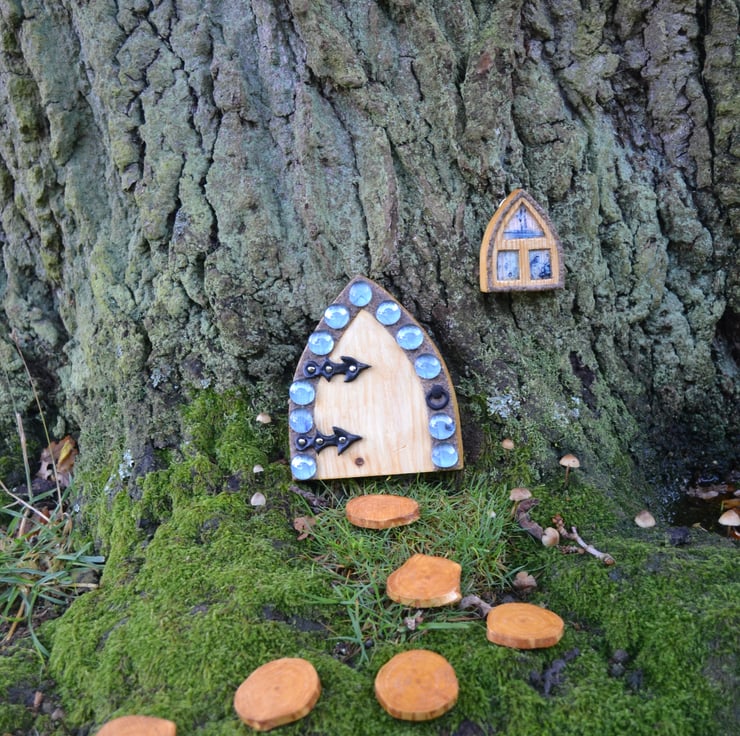 Invite the magic of Fairies, Gnomes and Elves into your garden with one of my unique, handcrafted miniature garden kits consisting of Fairy door (14cm Tall x 12.5cm Wide), a Fairy Window (7cm Tall x 6cm Wide), an oak walkway consisting of 5 stepping rounds (ave. 5cm diameter) and a little bag of fairy dust to help create that magical porthole into the world of Fairies, Gnomes and Elves.