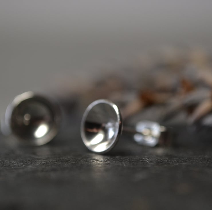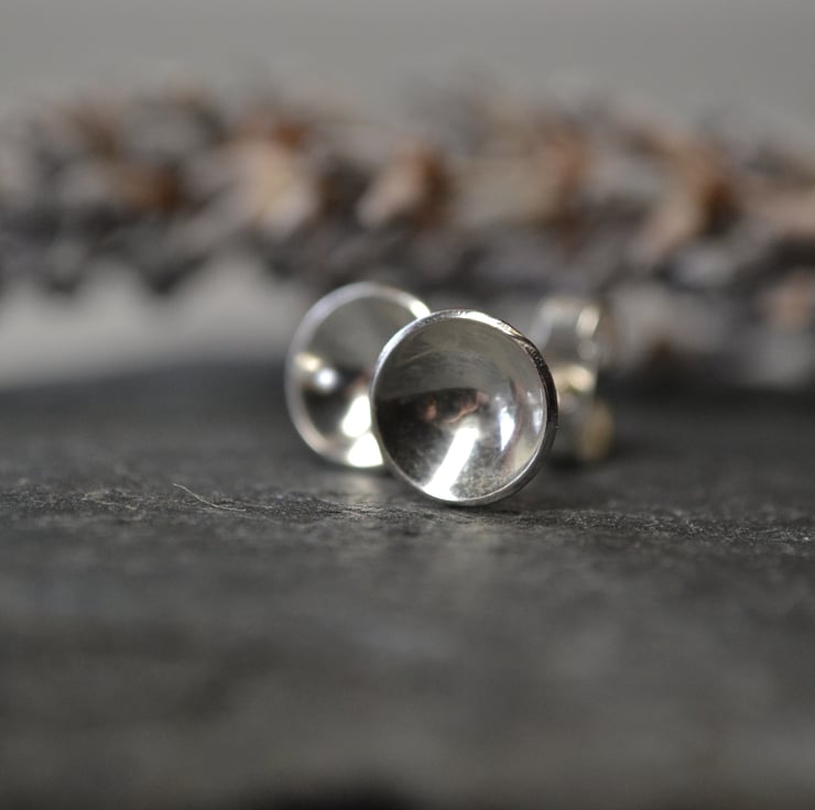 Domed (cupped) round sterling silver stud earrings. These are a smidge over 7mm diameter - but of course I can make other sizes on request.