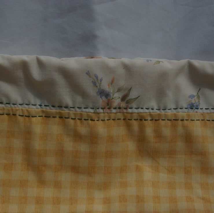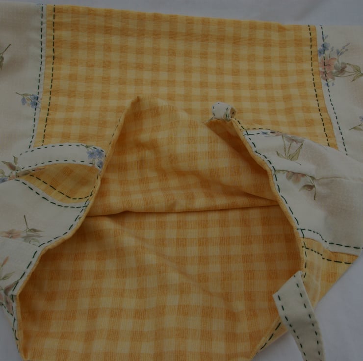 The handles have been created from the same material as the borders and also have the finishing touch of the dark green decorative hand stitching. The gap front the top of the handles to the top of the bag is 6.5inches (16.5cm)