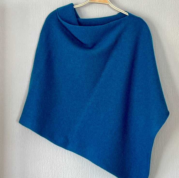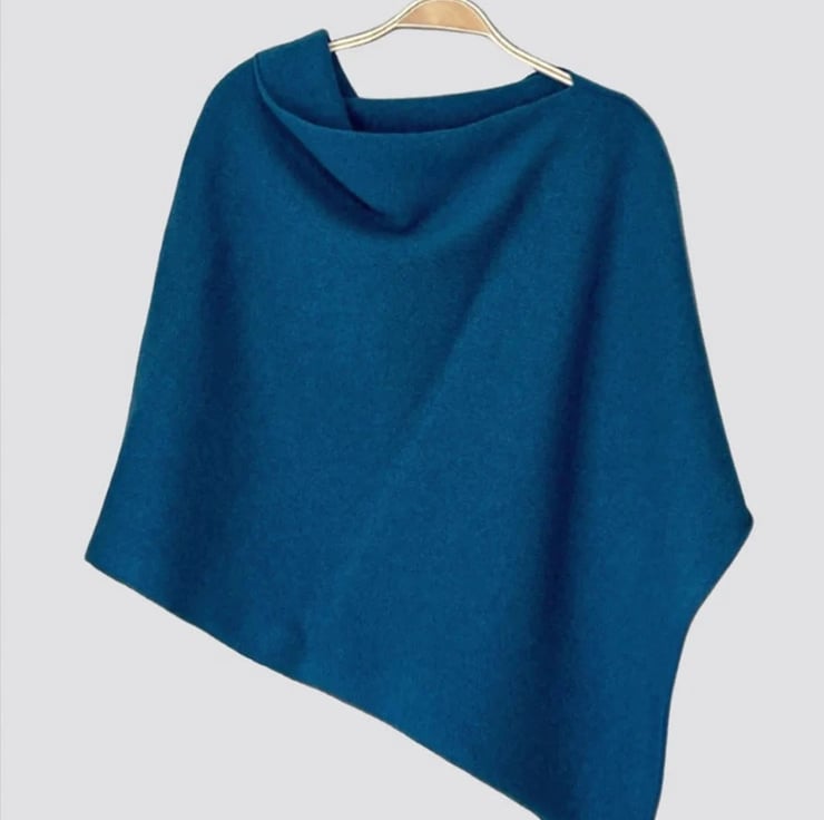 Luxurious British spun merino lambswool yarn the poncho is beautifully soft and cosy. Great for layering piece, it's the perfect choice for any outfit adding style and texture to your look. Perfect worn with smart trousers or jeans and statement jewellery or scarf for added interest. Ideal for a spring/summer walks or tucked up at home.