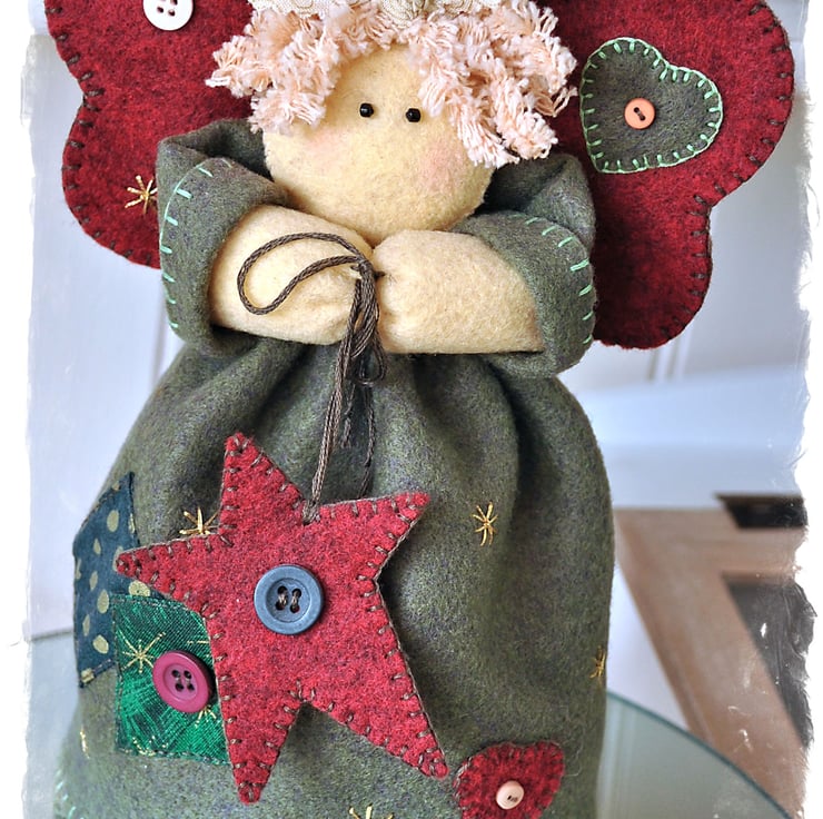 This pattern contains comprehensive step by step instructions with diagrams suitable for a beginner as well as a more accomplished sewer. Angelica has been designed to sit on top a Christmas Tree. Full sized pattern sheets printed on A3 paper, so no enlarging necessary.