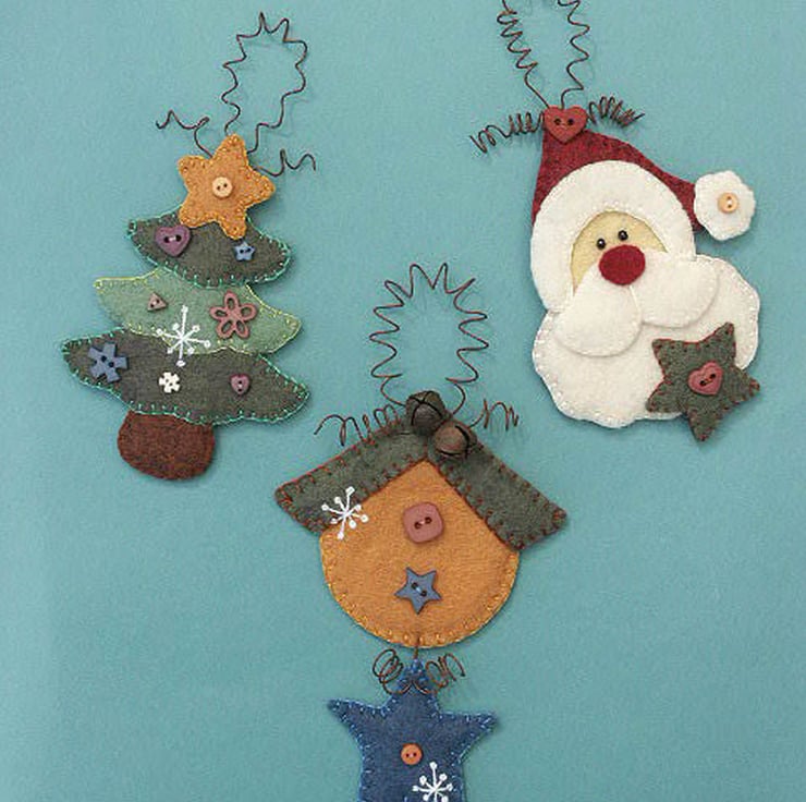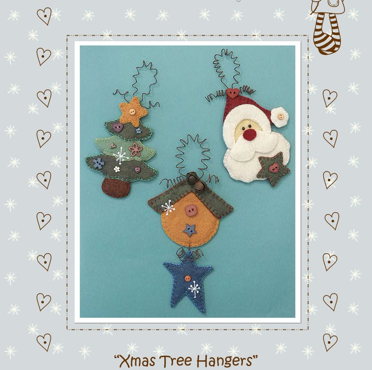 Xmas Tree Hangers Felt Pattern - Christmas Decorations