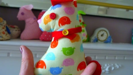 stitched. Red button eyes and finished off with a yellow button on the collar.