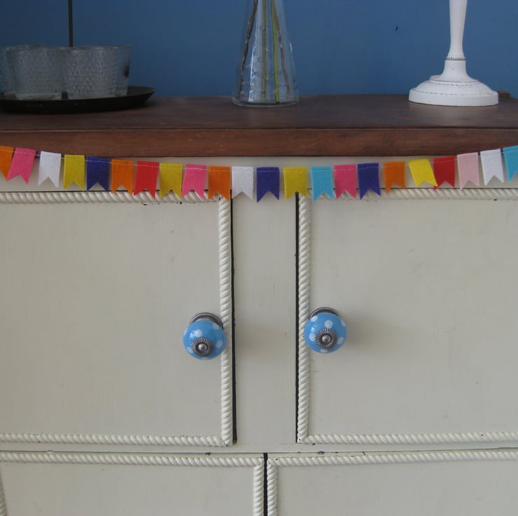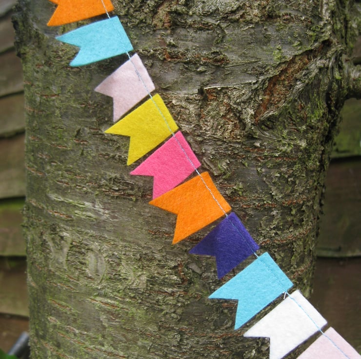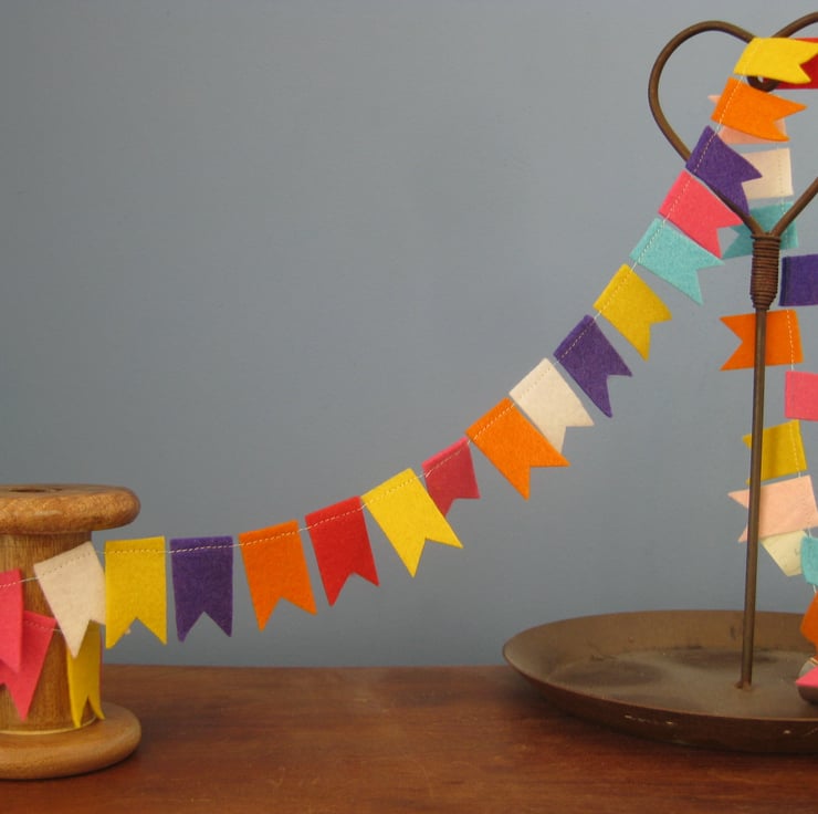 The bunting measures approx 1.3 meters in length and is made up of approx 50 felt flags that measure 3 x 2 cms.