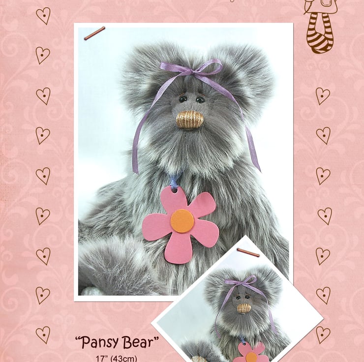 This pattern contains comprehensive step by step instructions with diagrams suitable for a beginner as well as a more accomplished sewer. The pattern shows you how to make the bear and her flower pendant. Full sized pattern sheets printed on A3 paper, so no enlarging necessary.